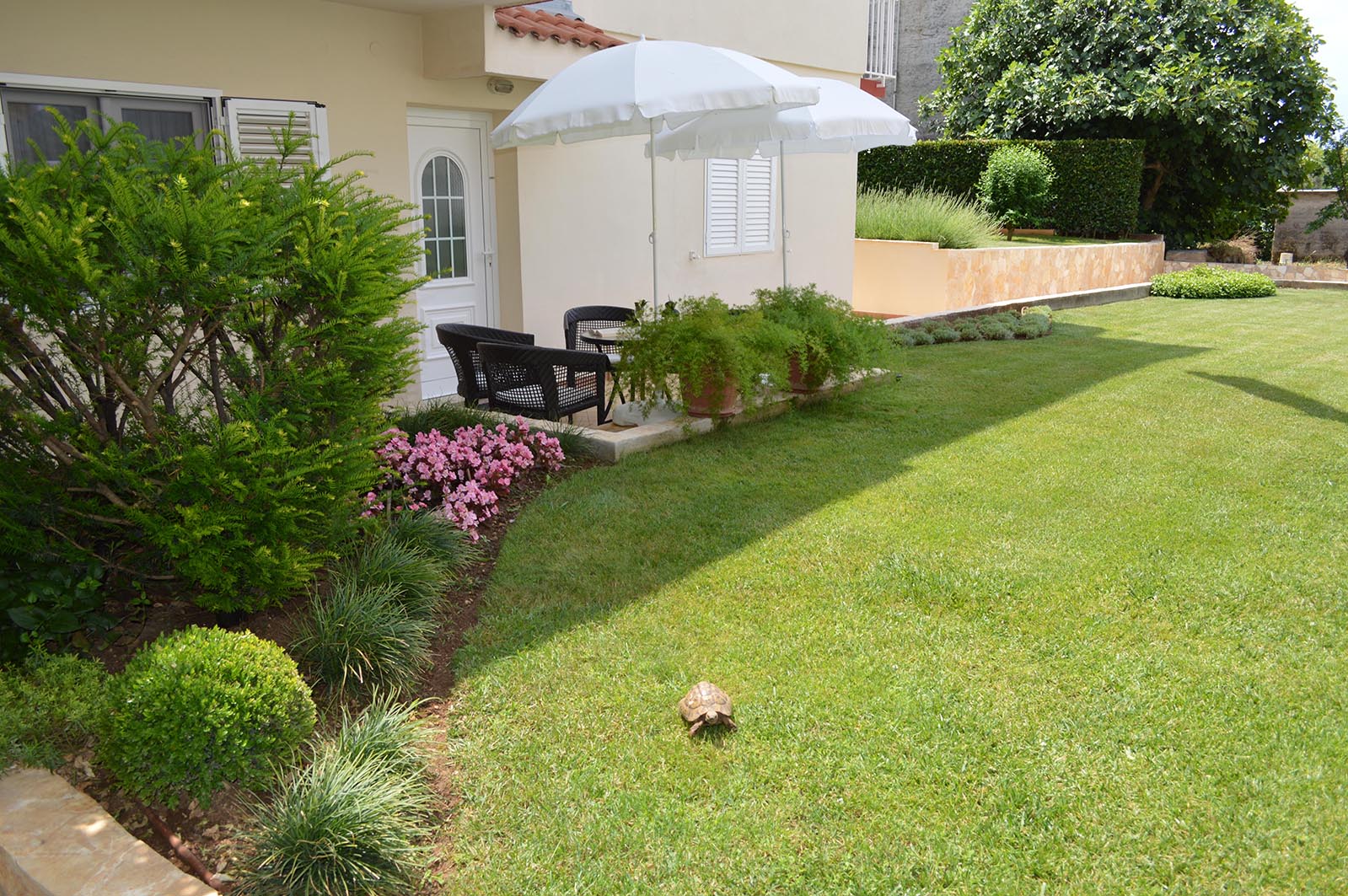 We are located 60 m from the beach, in a quiet surrounding with a beautiful garden. We are available for questions and help at any time.